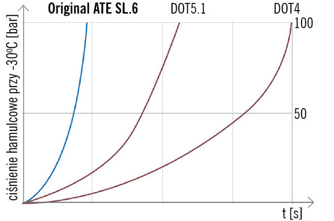 Większość producentów samochodów fabrycznie napełnia układy hamulcowe płynami niskowiskozyjnymi o specyfikacji DOT 4 – klasa 6 (zgodnie z ISO 4925). Płyn hamulcowy ATE SL.6 jest płynem o tej samej co fabryczna specyfikacji. Ten wysoko techniczny płyn został stworzony specjalnie do pracy z elektronicznie sterowanymi systemami hamulcowymi i może znaleźć zastosowanie we wszystkich pojazdach produkowanych po 1990 roku. Charakteryzuje go szczególnie niska wiskozyjność, wysoki punkt wrzenia suchego i mokrego, ulepszona smarowność i podwyższona ochrona antykorozyjna.