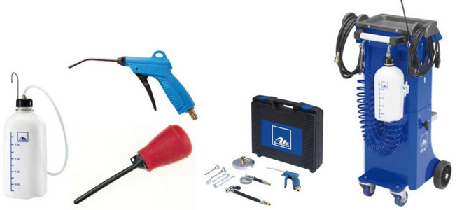 • pistolet do uzupełniania płynu hamulcowego (trzeba pamiętać, by nie stosować go do przedmuchiwania powietrzem),