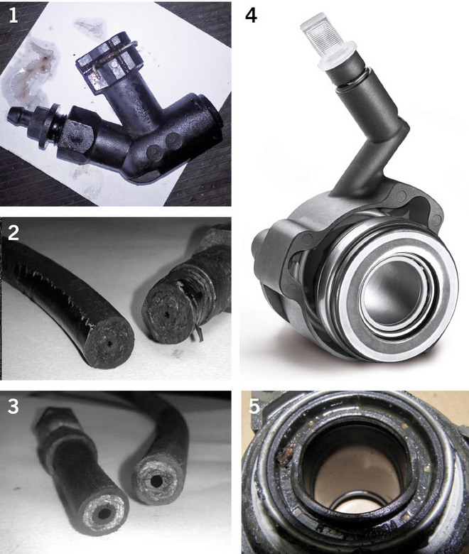 Siłownik centralny sprzężony z łożyskiem oporowym jest wymienialny (fot. 4). W sprzęgłach z siłownikiem zewnętrznym połączonym z łożyskiem oporowym za pomocą dźwigni zwanej łapą sprzęgła część ta nie jest zwykle wymieniana, gdyż zewnętrznego siłownika nie trzeba odłączać od układu hydraulicznego podczas wymiany sprzęgła. Jest to jednak błąd, gdyż wewnątrz siłownika znajduje się sprężyna dająca napięcie wstępne w układzie wysprzęglającym i ona też się zużywa. Ponadto po wymianie sprzęgła (z dociskiem bez kompensacji zużycia okładzin) siłownik zacznie pracować z innym skokiem, więc może pojawić się nieszczelność oraz problemy sterowania sprzęgłem.