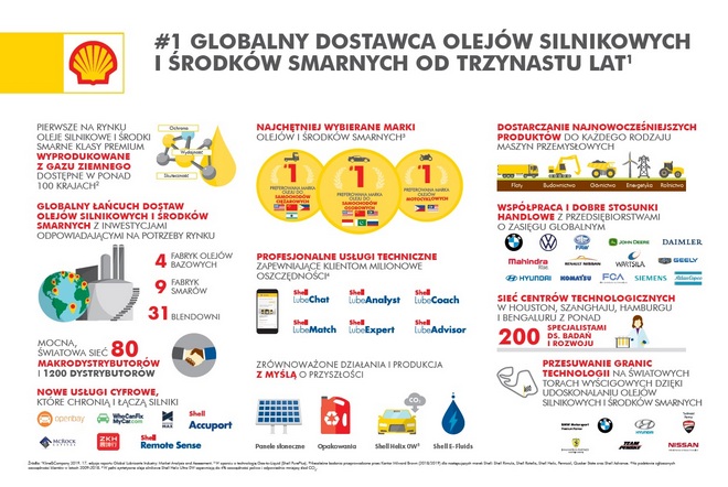 Jak wynika z analiz firmy Kline&Company, Shell już od 13 lat zajmuje pozycję światowego lidera w produkcji olejów silnikowych i środków smarnych.