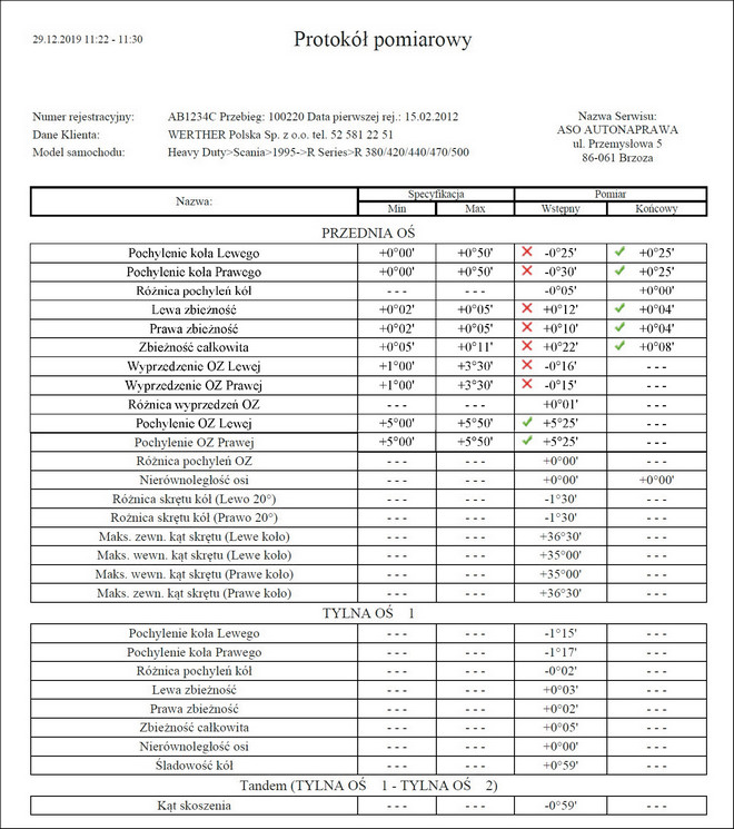 Specjalizowany przyrząd pomiarowy MaxTruck z uchwytami magnetycznymi oraz laserowymi głowicami z pochyłomierzami elektronicznymi