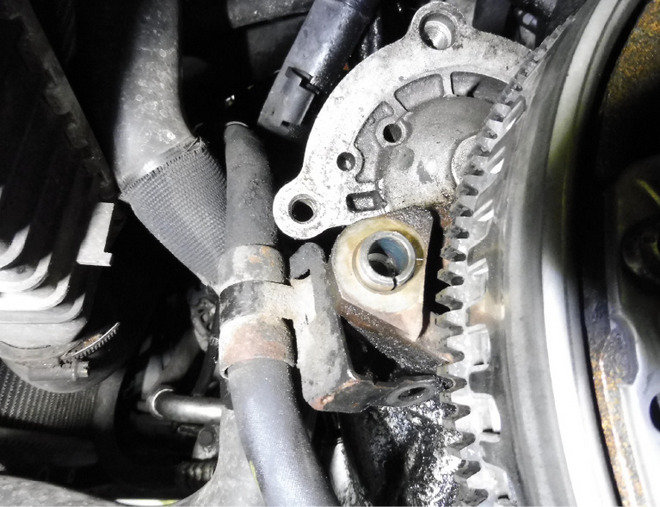 Fot. 4. Odpowiednio ustawiona tuleja prowadząca w bloku silnika grupy PSA