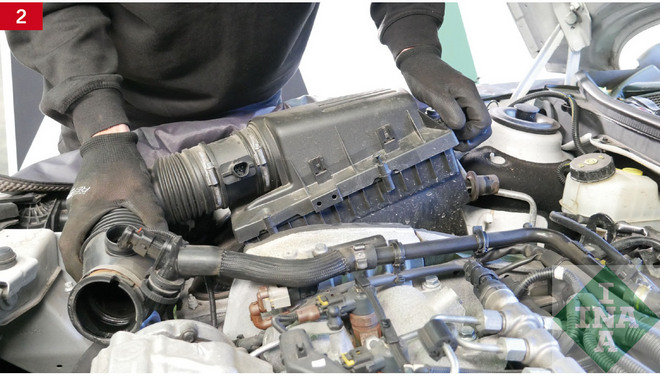 8. Rozłączamy przewody i demontujemy obudowę filtra powietrza (fot. 2).