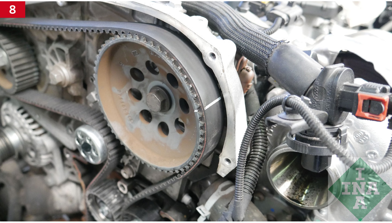Razem z paskiem rozrządu i pompą płynu chłodzącego (zestaw INA 530 0562 30) wymianie podlega zestaw układu paska osprzętu, który w zależności od typu wspomagania układu kierowniczego ma numer INA 529 0348 10 (dla systemu hydraulicznego) lub INA 529 0351 10 (dla systemu elektrycznego).