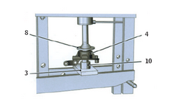 W uzasadnionych wypadkach [rys. D] układ montowanych elementów można lub trzeba odwrócić, czyli naciskać tłoczyskiem prasy na piastę (8), a ułożoną odwrotnie zwrotnicę (4) podeprzeć za wewnętrzny pierścień łożyska odpowiednio dopasowanym trzpieniem (10) ustawionym na podstawie prasy (3).