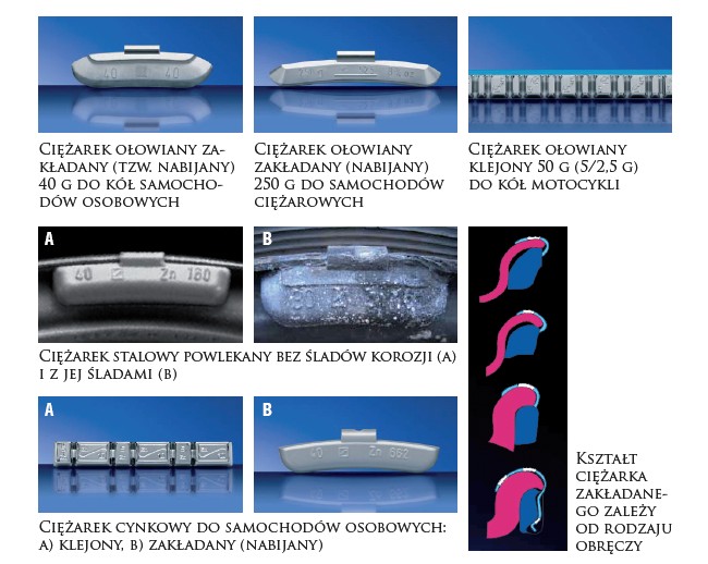 Ciężarki ołowiane stosowane były na całym świecie powszechnie do roku 2003, w którym zaczęła obowiązywać zabraniająca tego dyrektywa Unii Europejskiej nr 2000/53/EG. Decyzję taką wypadałoby zaakceptować, jeśli jej celem byłaby rzeczywiście ochrona zdrowia Europejczyków (np. w USA takiej troski nie ma) przed skutkami zbyt bliskich kontaktów z toksycznym metalem. Wylizywanie i ogryzanie kół pojazdów drogowych jest bowiem w Europie zwyczajem głęboko zakorzenionym historycznie i wciąż masowo kultywowanym. Jednak najwyraźniej nie o to chodziło, skoro zgodnie z tą dyrektywą nie wolno produkować i wprowadzać do obrotu ołowianych ciężarków do wyważania kół samochodów osobowych i dostawczych o masie od 5 do 60 g, lecz cięższych pojazdów użytkowych (potrzebujących gramatury wyważenia od 50 do 400 g) już to nie dotyczy. Czyżby ołów był szkodliwy tylko w małych ilościach? Też chyba nie, gdyż nadal może być używany do wyważania kół motocykli. W meandrach tej urzędniczej logiki pierwsi połapali się Włosi, w związku z czym sprzedaż „ciężarków do motocykli” wzrosła ostatnio w ich kraju 100-krotnie! Polacy też poszli tym tropem i niektórzy nasi producenci wprowadzają na rynek klasyczne ołowiane ciężarki z napisem na opakowaniu: „Przeznaczone do stosowania w pojazdach wyprodukowanych do dnia 1 lipca 2003 r.”. Jak łatwo się domyślić, pasują i do nowszych, choć z naruszeniem obowiązujących przepisów, ale kto właściwie miałby takie wykroczenia ścigać? Słowem: jaki przepis, takie i jego respektowanie. Jedynie producenci nowych samochodów stosują się do dyrektywy, ale im ona mniej szkodzi. |