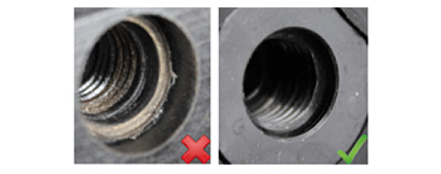 Podczas wymiany miechów należy między innymi zwrócić uwagę na dwie sprawy. Po pierwsze – jeśli wymieniamy tylko zużyty miech, sprawdźmy też stan amortyzatorów pod kątem zużycia i wycieków. Siła tłumiąca zużytego amortyzatora jest wyraźnie niższa, a to oznacza dodatkowe obciążenia sprężyny powietrznej, do jakich nie została zaprojektowana. Może to doprowadzić do jej przedwczesnego zużycia i konieczności powtórzenia naprawy po niedługim czasie. Po drugie – jeśli miech jest montowany na amortyzatorze, z którego wycieka olej, nastąpi szybka degradacja gumy w nowym miechu, co zdecydowanie skróci jego żywotność.