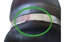 Po wymianie miecha nie wolno natychmiast opuszczać pojazdu bez wsparcia podnośnika. W przeciwnym razie dochodzi do nierównomiernego rozłożenia masy, co może spowodować wygięcie miecha na skutek nadmiernych obciążeń bocznych, a w konsekwencji – wysunięcie się rękawa spod opaski zaciskowej.