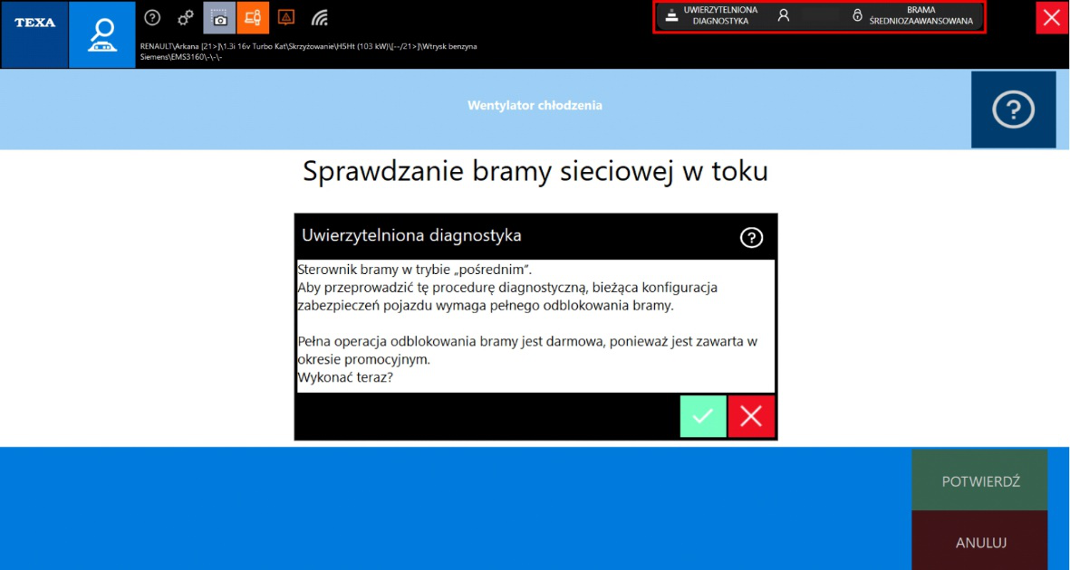 Do 20.09.2022 r. trwa promocja, która umożliwia zapoznanie się z procedurą odblokowania bramki gateway Renault i Dacia i dostrzeżenie korzyści płynących z integracji tej funkcjonalności z oprogramowaniem diagnostycznym IDC5. Texa zdecydowała się przyznać okres promocyjny dla tej usługi, który obejmuje niemal nieograniczoną liczbę odblokowań (999 odblokowań dla każdej umowy TEXPACK CAR), dla wszystkich spełniających warunki dostępu: