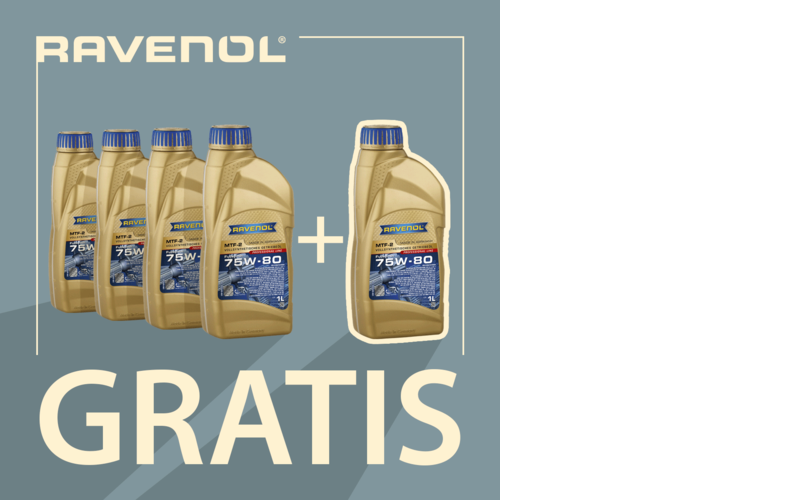 Przy zakupie oleju Ravenol MTF-2 75W-80 w opakowaniu o pojemności 4 litry lub 4 opakowaniach o pojemności po 1 litrze - zakupujący otrzyma dodatkowo 1 litr oleju gratis.