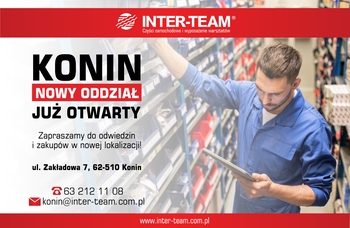 Nowy oddział Inter-Team w poniedziałek 28 listopada 2022 r. rozpoczął swą dzialalnośc przy ul. Zakładowej 7 w Koninie. Jest to czwarty oddział tej spółki w Wielkopolsce oraz 82. w kraju.
