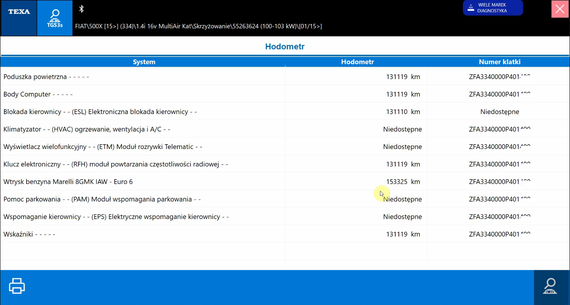 Oprogramowanie pozwala również sprawdzić, czy wszystkie sterowniki mają przypisany taki sam numer nadwozia – niezgodność oznacza, że został on wymieniony na inny (najczęściej używany).