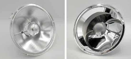 Odbłyśnik przed regeneracją (z lewej) i po jej przeprowadzeniu