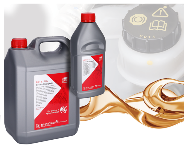 Płyn hamulcowy to ważny, krytyczny z punktu widzenia bezpieczeństwa element układu hamulcowego pojazdu. Płyny hamulcowe febi DOT 4, DOT 4 LV (low viscosity - niska lepkość), DOT 4 Plus, DOT 5.1 oraz DOT 5.1 EHV (pojazdy elektryczne i hybrydowe) to w pełni syntetyczne płyny hamulcowe oparte na glikolach, zawierające inhibitory utleniania i korozji. Płyny te charakteryzują się doskonałymi właściwościami w zakresie suchego i mokrego punktu wrzenia, co zapobiega również powstawaniu pęcherzyków pary wodnej.