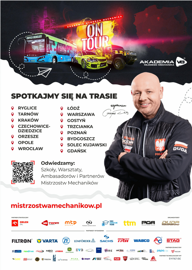 26 lutego 2024 r. rozpoczyna się niezwykłe przedsięwzięcie – Edukacyjna Trasa Akademii Młodego Mechanika On Tour. To wyjątkowa podróż przez Polskę, której celem jest Łączenie pasjonatów mechaniki i promowanie wiedzy o motoryzacji w inspirujący sposób.