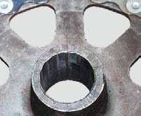 Zużyte miejsce podparcia widełek na obudowie łożyska