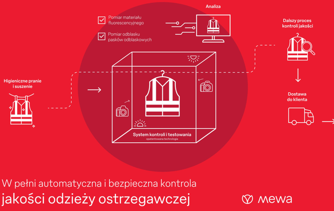 We współpracy z Instytutem Fraunhofera firma Mewa, dostawca usług tekstylnych, opracowała procedurę testową opartą na sztucznej inteligencji, która może być wykorzystana do precyzyjnego określania stopnia zachowania funkcji ochronnych odzieży ostrzegawczej po każdym procesie prania i pielęgnacji.