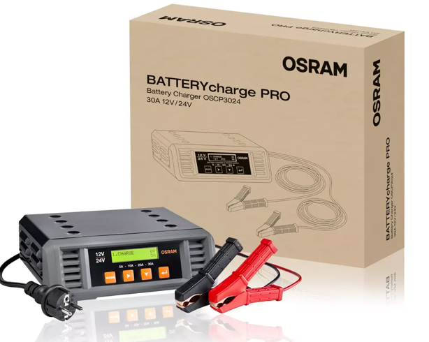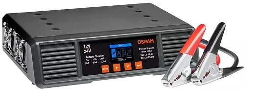 Inteligentny prostownik do akumulatorów 12 V i 24 V, pozwalający na ustawienie odpowiedniego poziomu ładowania. Może on zapewnić natężenie do 100 A oraz powolne lub szybkie ładowanie. Zintegrowana funkcja testowa dodatkowo umożliwia diagnostykę akumulatora i alternatora. Profesjonalne prostowniki Osram z podświetlanym ekranem przechodzą 7-stopniowy cykl ładowania w przypadku akumulatorów litowych i 9-stopniowy w przypadku pozostałych. Dzięki niewielkiej wadze ładowarka jest łatwa do przenoszenia.