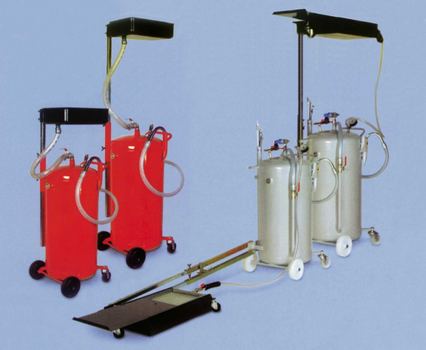 | Rys.: Pneumatyczno-grawitacyjne urządzenia do obsługi samochodowych układów smarowania | Rys.: Podciśnieniowa odsysarka olejów i płynów eksploatacyjnych |