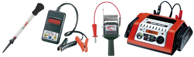 Na rynku spotkamy wiele nowoczesnych testerów, pozwalających szybko i dokładnie zbadać stan akumulatora. Są one wygodne i łatwe w użyciu, a mogą służyć do kontroli zarówno akumulatorów bezobsługowych, jak i obsługowych. Potrafią równocześnie sprawdzić akumulator, alternator i rozrusznik oraz wykryć ich usterki. Trzeba jednak pamiętać, że elektroniczne testery pokazują stan akumulatora w momencie dokonywania pomiaru, więc w celu uzyskania prawidłowych wyników badanie należy wykonywać nie wcześniej niż po godzinie od zakończenia ładowania lub po pobraniu dużego prądu.