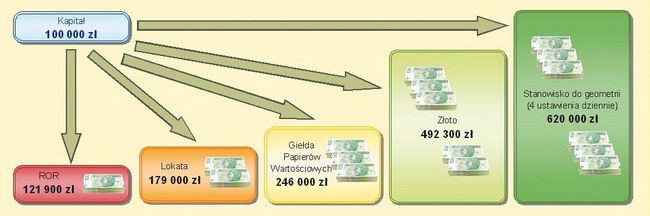 Tak czy inaczej, dokonane obliczenia prowadzą do wniosku, że przykładowa inwestycja w kompletne stanowisko do pomiaru i regulacji geometrii przynosi w ciągu 10 lat ponad (w sprzyjających warunkach nawet grubo ponad) 600 000 złotych czystego zysku. Jest on większy prawie 24 razy od osiągniętego na ROR przy oprocentowaniu 2% rocznie, 8 razy niż na lokacie (6% rocznie), ponad 4 razy niż na inwestycjach na Giełdzie Papierów Wartościowych (WIG) i o około połowę wyższy niż przy zainwestowaniu w złoto.