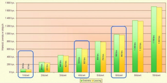 To trochę zabawne, ale nie mając jej w ogóle, zarabiamy więcej prawie 19 razy, niż gdybyśmy ją mieli na ROR (2% rocznie), ponad 5 razy więcej niż na lokacie (6% rocznie), prawie 3 razy więcej niż na giełdzie (WIG) i tyle samo, co po zainwestowaniu tych (faktycznie nie posiadanych) pieniędzy w złoto. W dodatku w porównaniu z tymi innymi możliwościami ryzyko inwestycyjne jest przy leasingu najmniejsze.