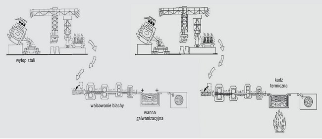 Schemat hutniczej produkcji blach dwustronnie ocynkowanych metodą elektrolityczną i ogniową