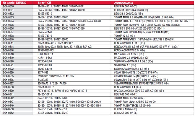 Jest to największe od 2008 roku rozszerzenie programu sond lambda marki Denso. Produkty mają 155 zastosowań i zastępują 60 numerów OE. Po rozszerzeniu program sond lambda Denso składa się z 447 referencji, które mają 7621 zastosowań.