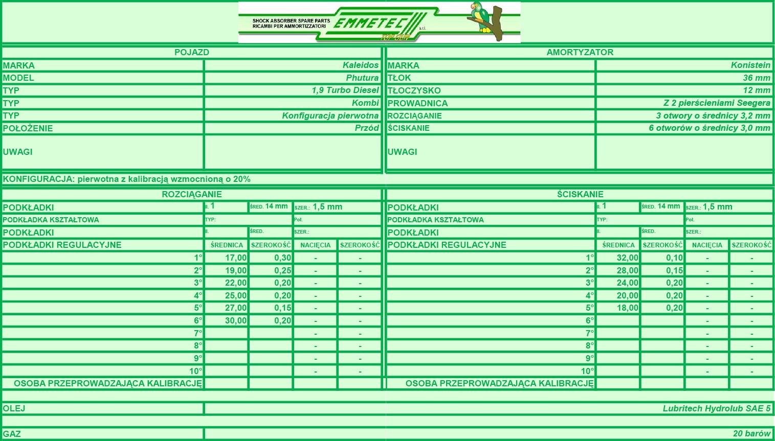 Przykładowy formularz dokumentujący przeprowadzoną modyfikację amortyzatora