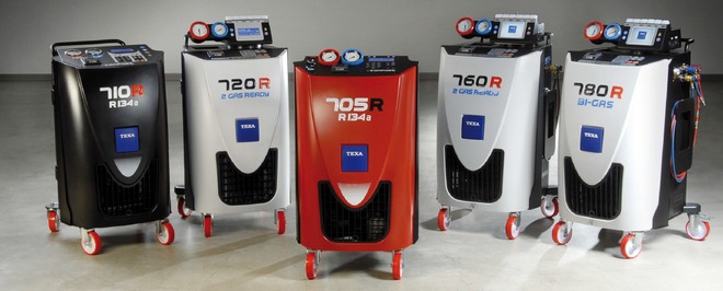 W stacjach marki Texa serii 6xx i 7xx co 90 godzin pracy pompy próżniowej konieczna jest wymiana oleju i filtra oparów pompy oraz wymiana filtra mechanicznego i filtra osuszacza po każdych 150 kg przefiltrowanego czynnika.