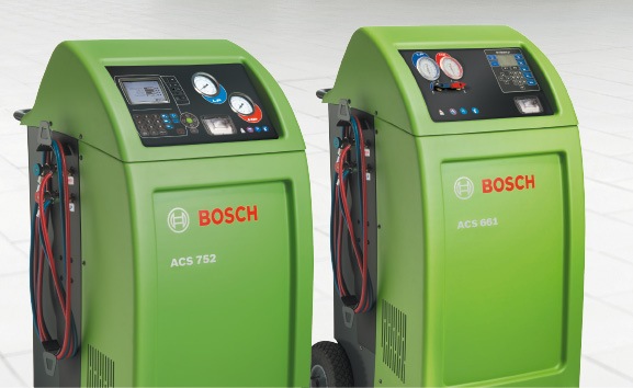 W stacjach marki Bosch w przypadku modeli serii 650 trzeba co 60 godzin pracy pompy próżniowej przeprowadzić wymianę oleju oraz wymianę filtra osuszacza co 150 kg przefiltrowanego czynnika chłodniczego. W przypadku urządzeń serii 751 tej marki co 60 godzin pracy pompy próżniowej obowiązuje wymiana oleju, a po każdych 75 kg przefiltrowanego czynnika chłodniczego wymiana filtra osuszacza. W modelach serii 511 serwisowanie wymagane jest co 50 godzin pracy pompy próżniowej i obejmuje wymianę oleju, a wymiana filtra osuszacza następuje po 50 kg przefiltrowanego czynnika. W seriach 611/652 czynności te należy przeprowadzać co 10 godzin pracy pompy próżniowej i co 150 kg przefiltrowanego czynnika. Podobne cykle serwisowe dotyczą serii 752, z tym że wymiana filtra osuszacza następować powinna po przefiltrowaniu każdych 68 kg czynnika chłodniczego. Stacje serii 810 muszą być serwisowane co 30 godzin pracy pompy próżniowej w zakresie wymiany oleju, a filtr osuszacza wymieniany być powinien co 150 kg przefiltrowanego czynnika chłodniczego.