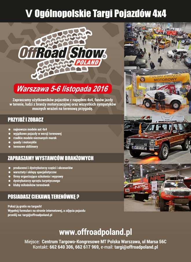 W najbliższy weekend (5 i 6 listopada) w Warszawie odbędą się piąte targi OffRoad Show Poland.