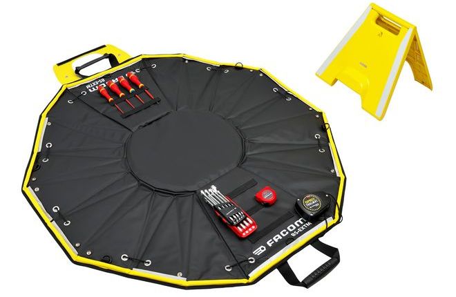 Sprzedawana firmę Facom mata narzędziowa ma nośność 5 kg i miejsca na niezbędne na narzędzia.