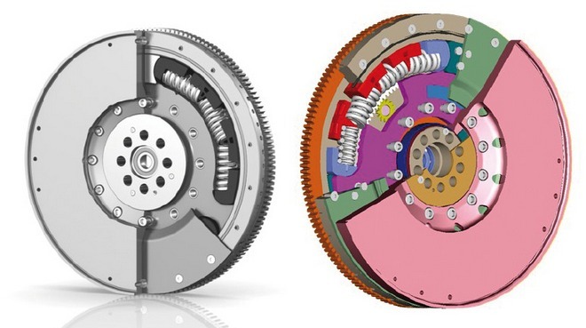 Jeżeli zastosowanie tłumika w tarczy sprzęgłowej nie jest możliwe, wówczas tłumienie przenosi się na koło zamachowe poprzez zastosowanie jego dwumasowej konstrukcji.