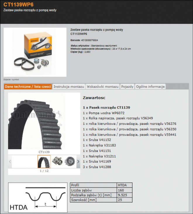 • wyszukiwanie danych o produktach według numerów katalogowych ContiTech,