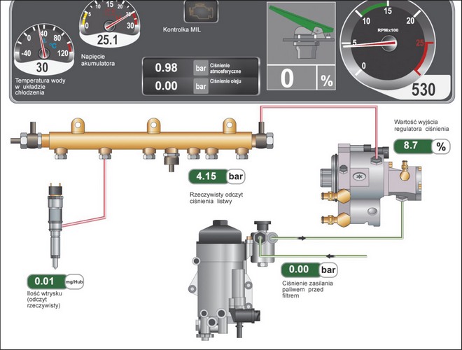 Wspomnieć tu należy również o funkcji Dashboard, której aktywację umożliwia wirtualny sklep APP. Jest to dodatkowa zakładka diagnostyczna, obrazująca graficznie parametry oraz strategię pracy diagnozowanego układu w sposób przyjazny dla użytkownika i zrozumiały intuicyjnie.