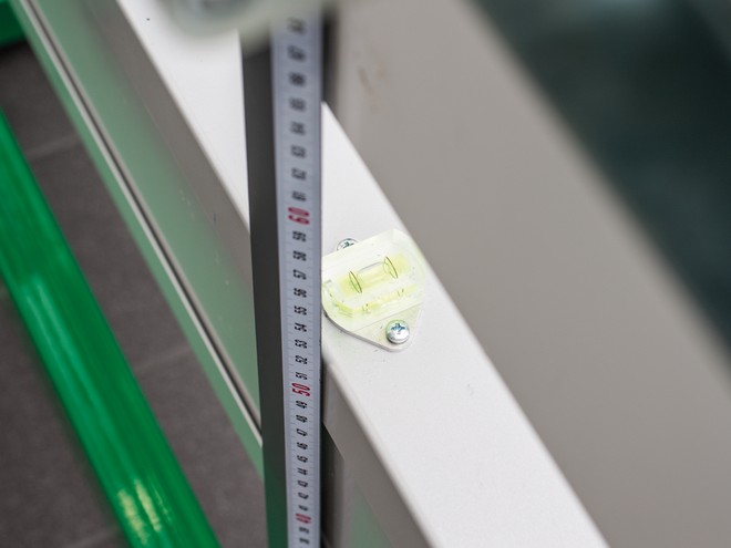 Ustawianie elementów systemu kalibracyjnego według linii na posadzce stanowiska diagnostycznego
