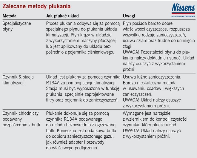 Aby układ klimatyzacji działał w sposób prawidłowy, musi być pozbawiony wewnętrznych zanieczyszczeń. Czynnik chłodniczy i olej pracujące w warunkach wysokich temperatur i ciśnień, a także precyzyjne elementy sprężarki dla optymalnego działania wymagają braku zanieczyszczeń w układzie.