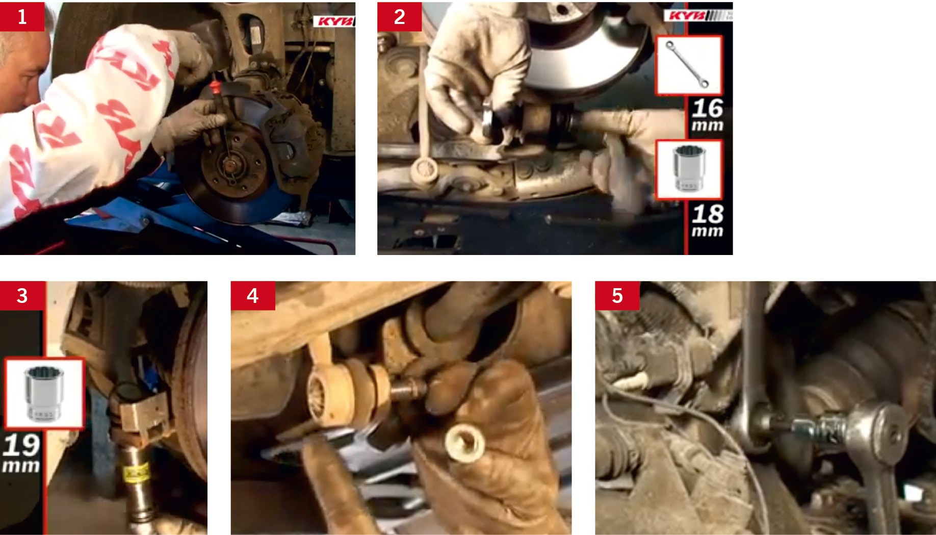 KYB zaleca wymieniać amortyzatory i sprężyny zawieszenia parami w obrębie jednej osi, a po każdej takiej wymianie wykonać kontrolę geometrii zawieszenia.