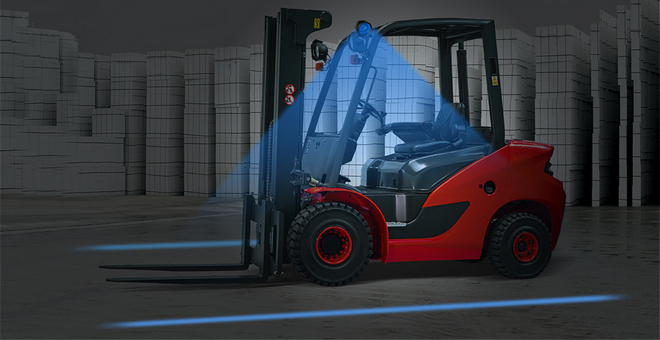 Modele SL60 LED pozwalają na wyświetlanie obok pojazdu linii ostrzegawczych w kolorze czerwonym lub niebieskim. Dzięki specjalnym układom optycznym linie są wyraźnie widoczne na podłożu. Zapobiega to wypadkom z udziałem pieszych.