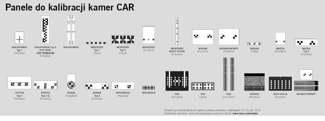 Również niektóre modele samochodów ciężarowych i dostawczych wymagają zastosowania właściwego sprzętu do prawidłowej kalibracji systemów wspomagania kierowcy, czyli kamer, radarów lub czujników sterujących między innymi pracą aktywnego tempomatu.