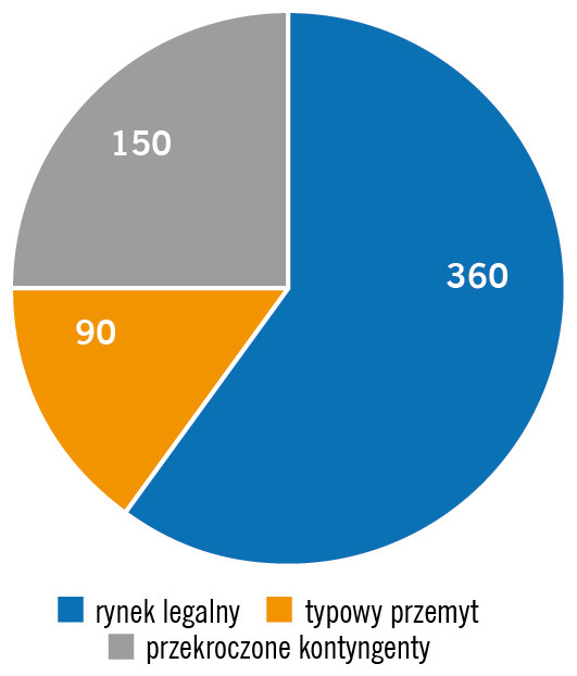 Szacuje się, że co najmniej 40% krajowego zapotrzebowania o wartości 240 mln zł pochodzi z nielegalnych dostaw – przemyconych albo przywiezionych z naruszeniem systemu kontyngentów. Według analityków Fundacji Prozon, rok 2018 zakończył się czterdziestoprocentowym udziałem czynników wwiezionych nielegalnie na teren Polski.