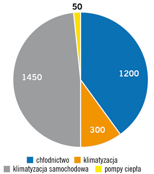 W Polsce co roku zużywa się około 3 tysięcy ton syntetycznych czynników chłodniczych, z czego najwięcej, bo blisko połowę, stanowi R134a.