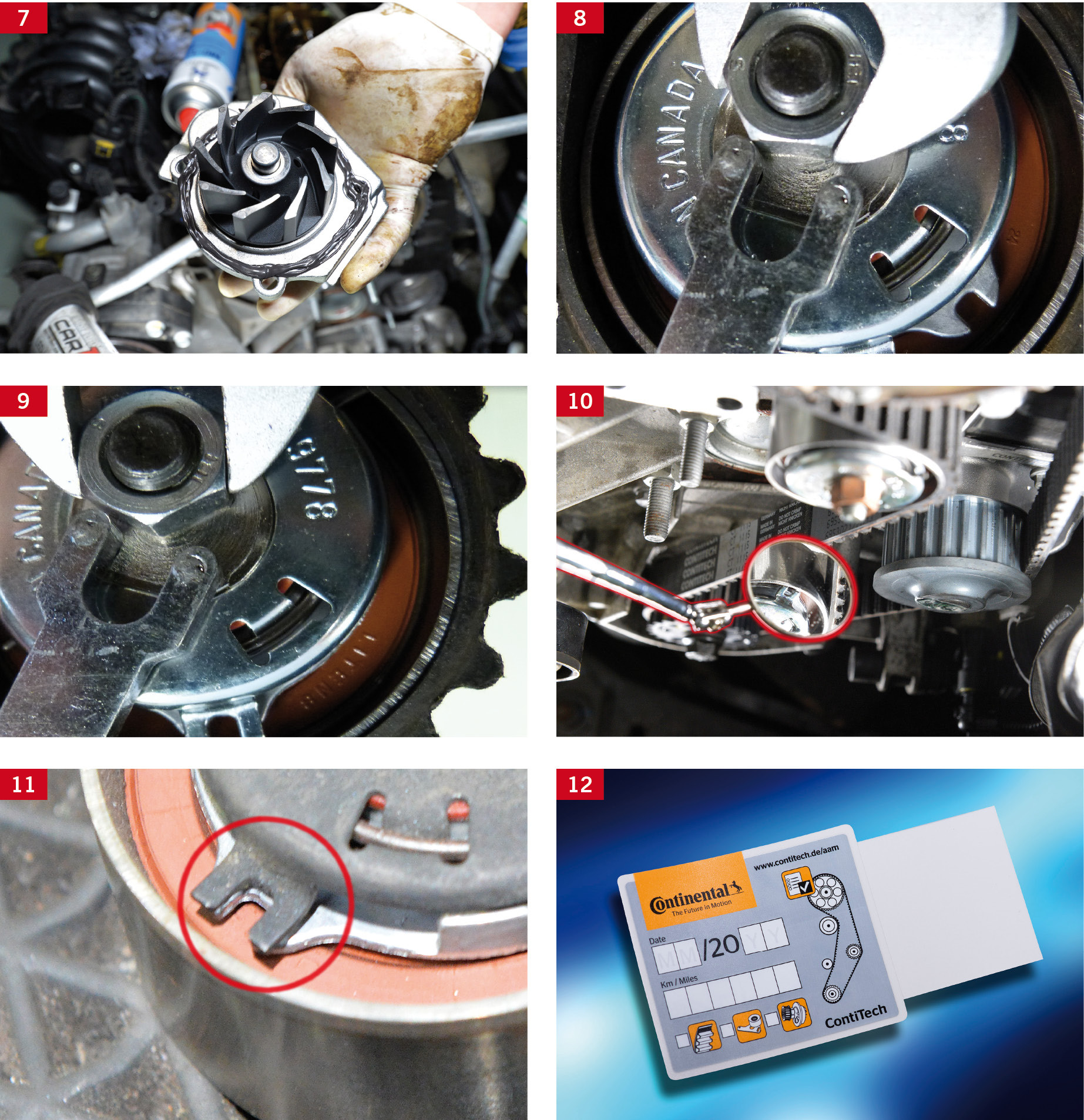 11. Zapisać wymianę oryginalnego paska rozrządu Continental na dostarczonej naklejce i umieść ją w komorze silnika (fot. 12).