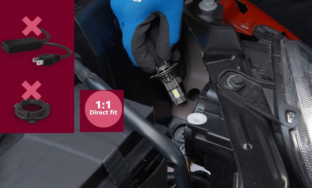 Homologacja tych retrofitów pozwala korzystać z nich we wszystkich lampach, bez konieczności dopasowywania numerów homologacji reflektorów, posiadania w samochodzie oficjalnych dokumentów homologacyjnych czy umieszczania naklejek na reflektorach.