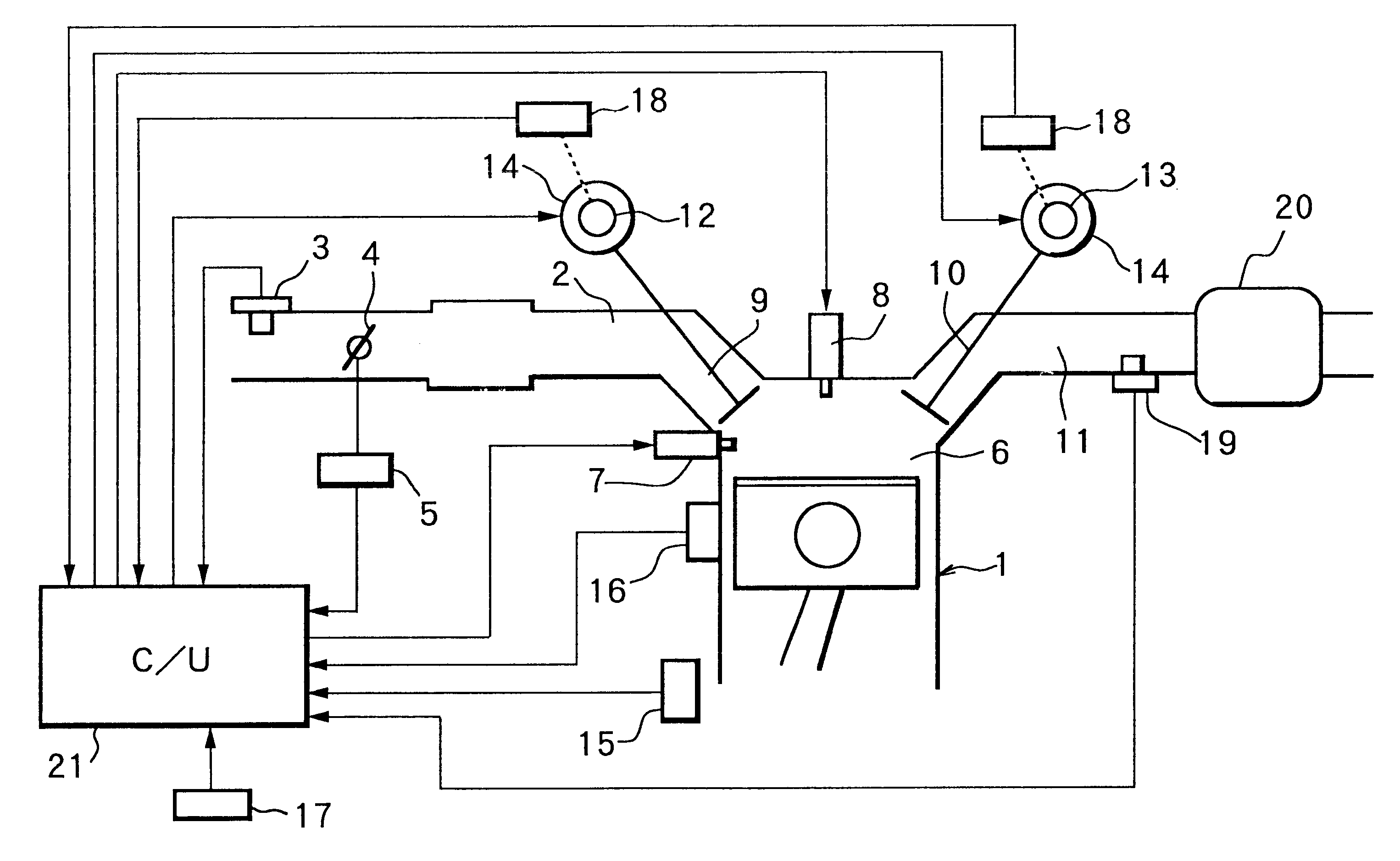 1. cylinder 2. kanał dolotowy 3. przepływomierz 4. przepustnica 5. czujnik otwarcia przepustnicy 6. komora spalania 7. wtryskiwacz paliwa 8. świeca zapłonowa 9. zawór dolotowy 10. zawór wydechowy 11. kanał wydechowy 12. i 13. wały rozrządu (dolotu i wydechu) 14. mechanizm zmiany fazy wydechu 15. czujnik pozycji wału korbowego 16. czujnik temperatury silnika 17. włącznik zapłonu 18. czujniki pozycji wałów rozrządu 19. sonda lambda 20. katalizator wydechowy 21. mikroprocesorowy sterownik silnika