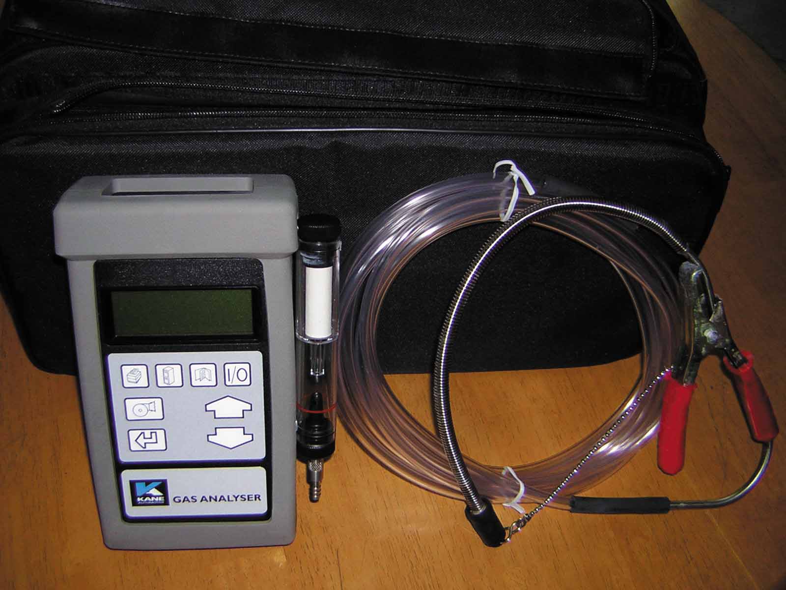 Urządzenie do analizy spalin. Do silników z zapłonem iskrowym wyposażonych w katalizatory używa się analizatorów czterogazowych, które możliwiają pomiar emisji tlenku węgla CO, węglowodorów CH, dwutlenku węgla CO2, tlenu O2 oraz współczynnika składu mieszanki (lambda) i » AFR.