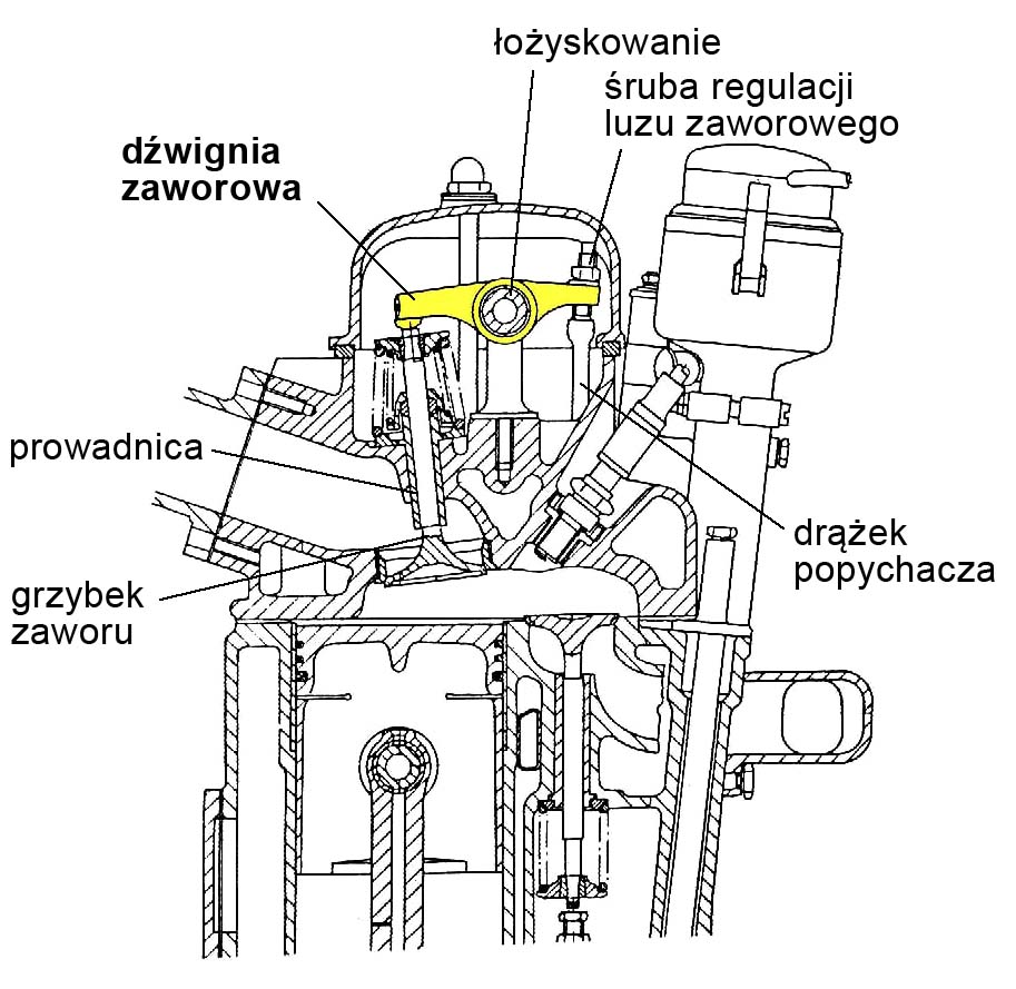 Element pośredni, powodujący otwieranie i zamykanie zaworu. Przenosi siłę bezpośrednio z krzywki wału rozrządu (patrz » wał rozrządu) lub z popychacza (patrz » popychacz).