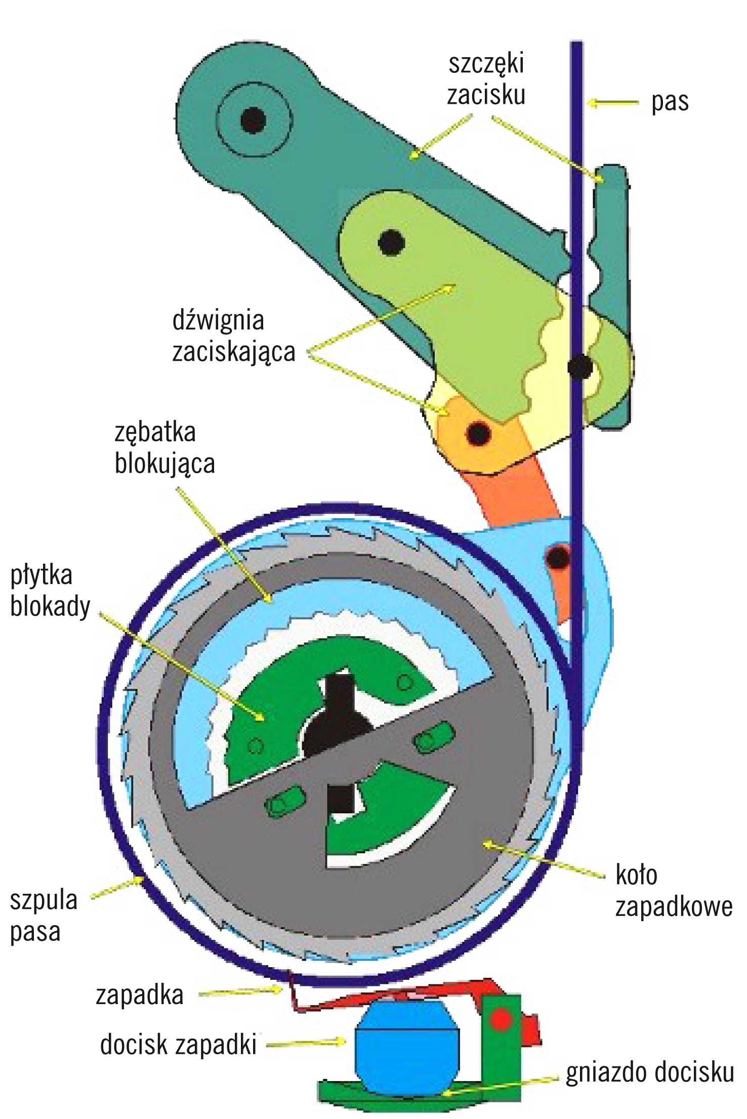 Automatyczna blokada pasów bezpieczeństwa.