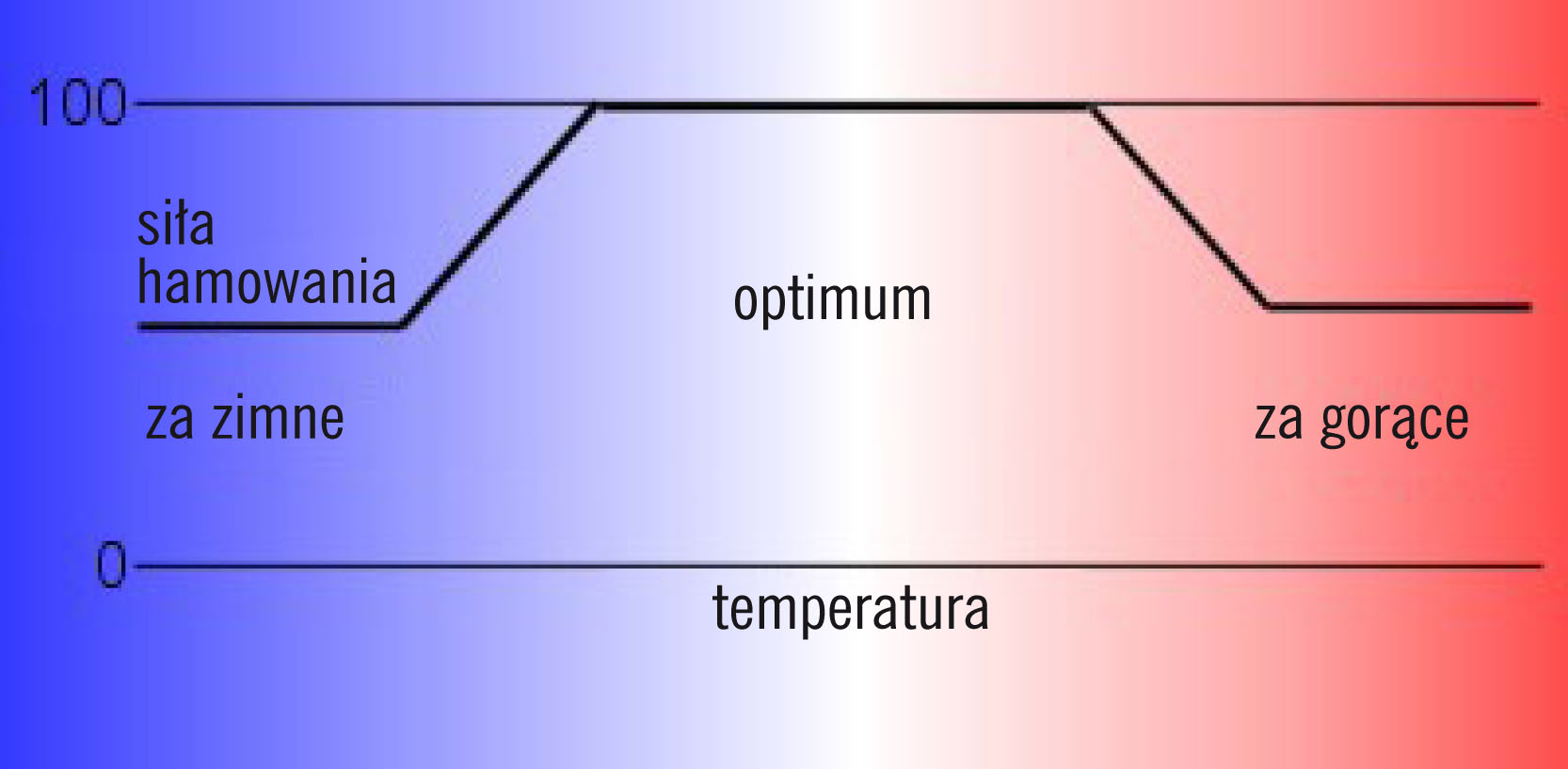 Spadek siły hamowania spowodowany rozgrzewaniem się tarczy lub bębna (w wyniku długotrwałego używania hamulców), częsty w hamulcach bębnowych, rzadki w dobrze chłodzonych tarczowych.